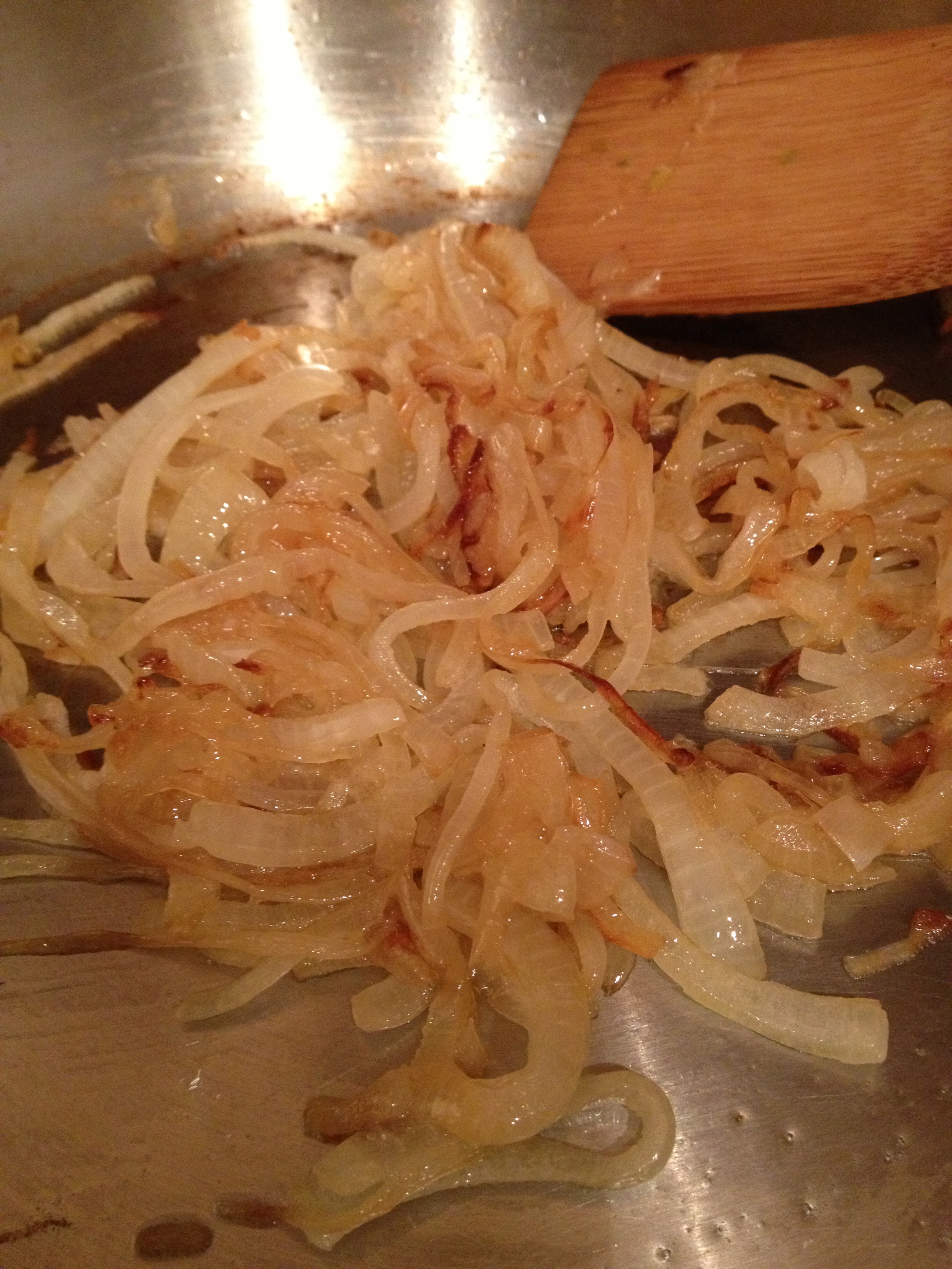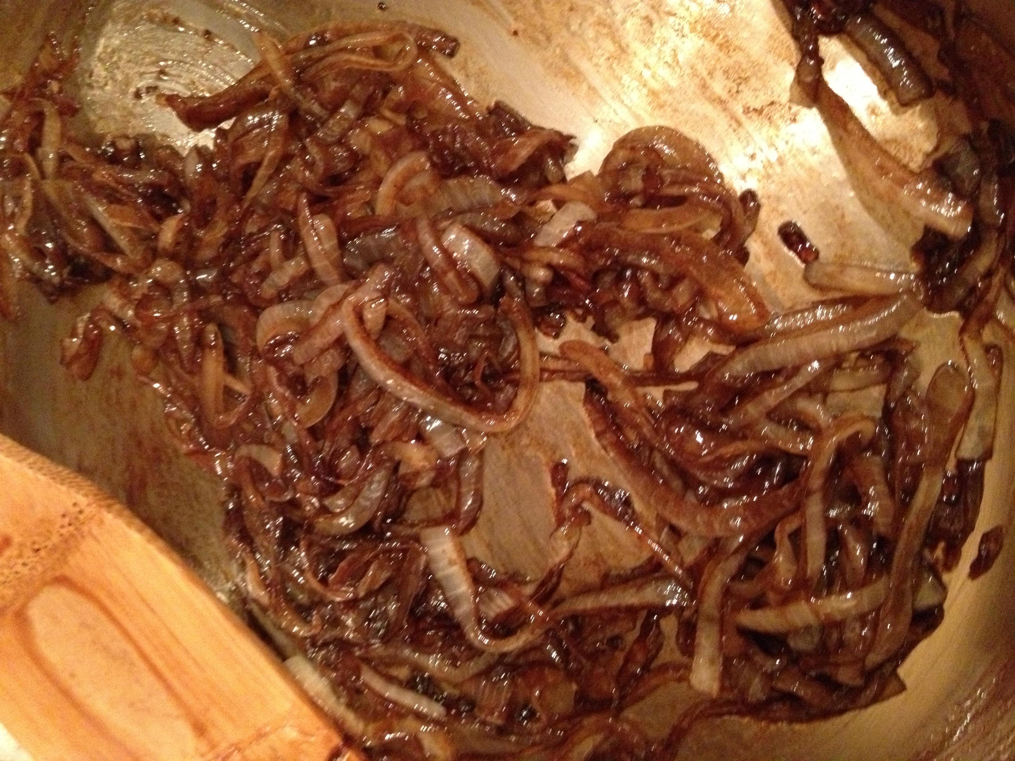 First you need to make the onions, which requires slow and low caramelization. When you think they are done, cook them for 5 more minutes. The longer and slower the better.