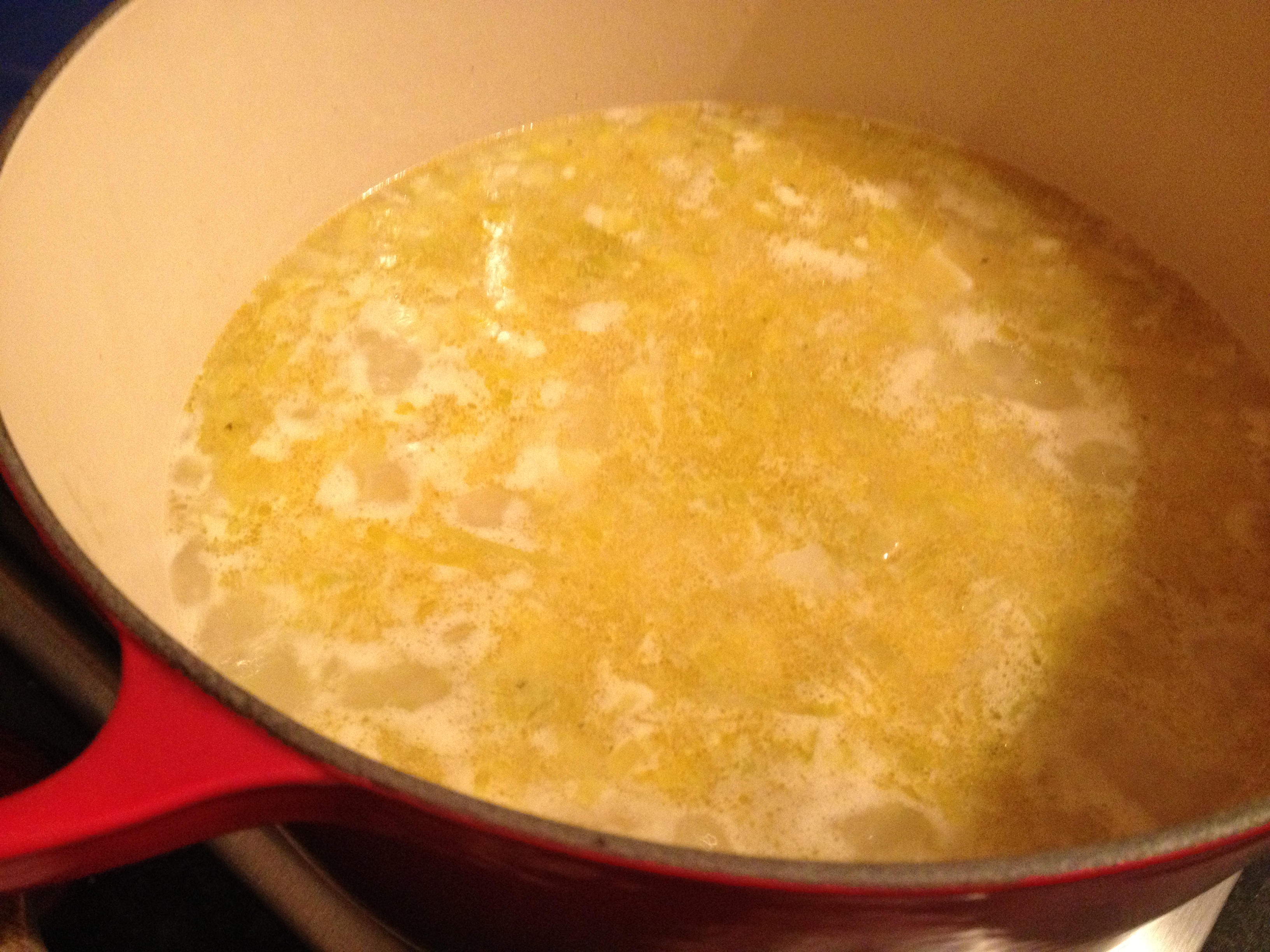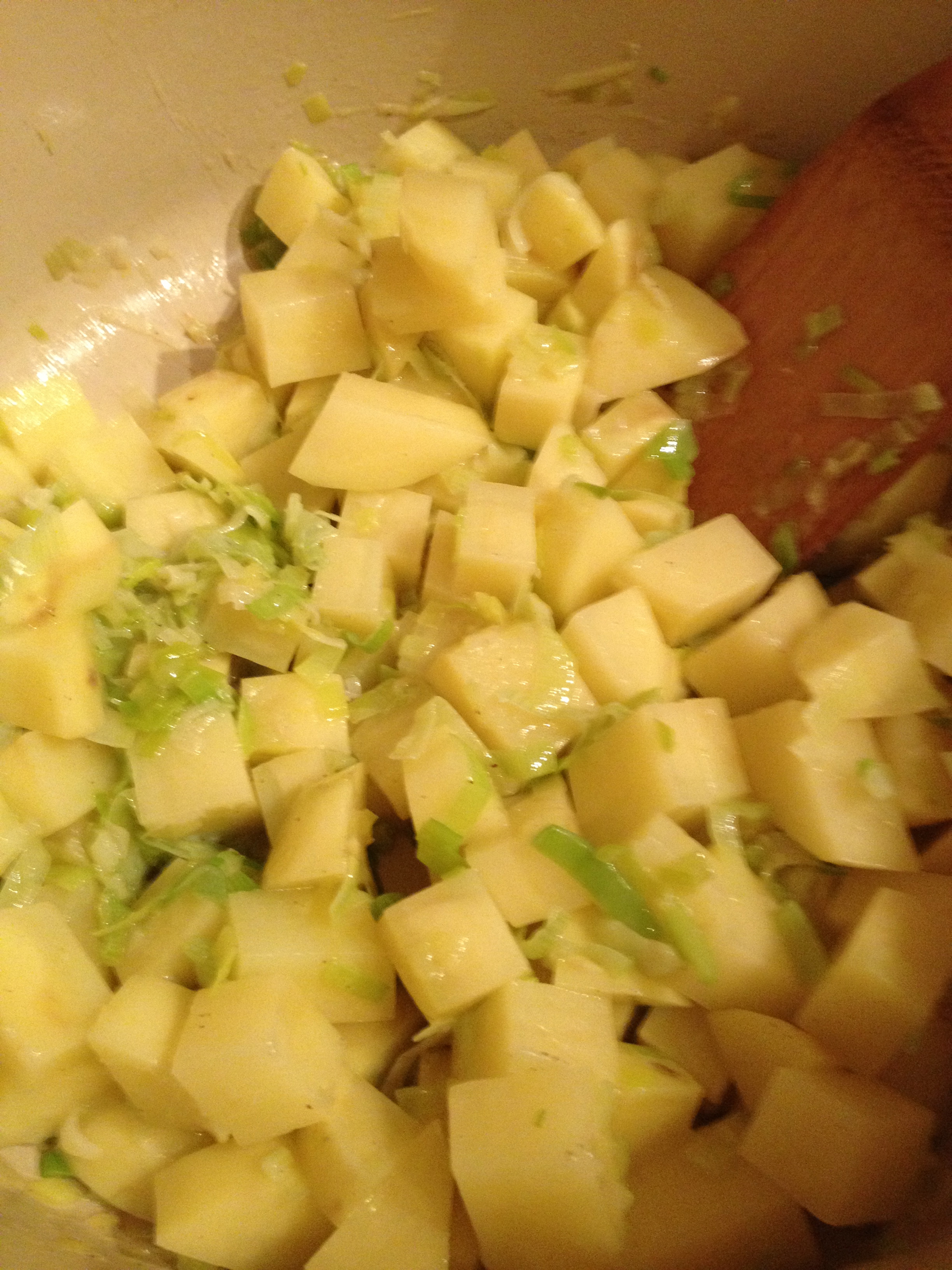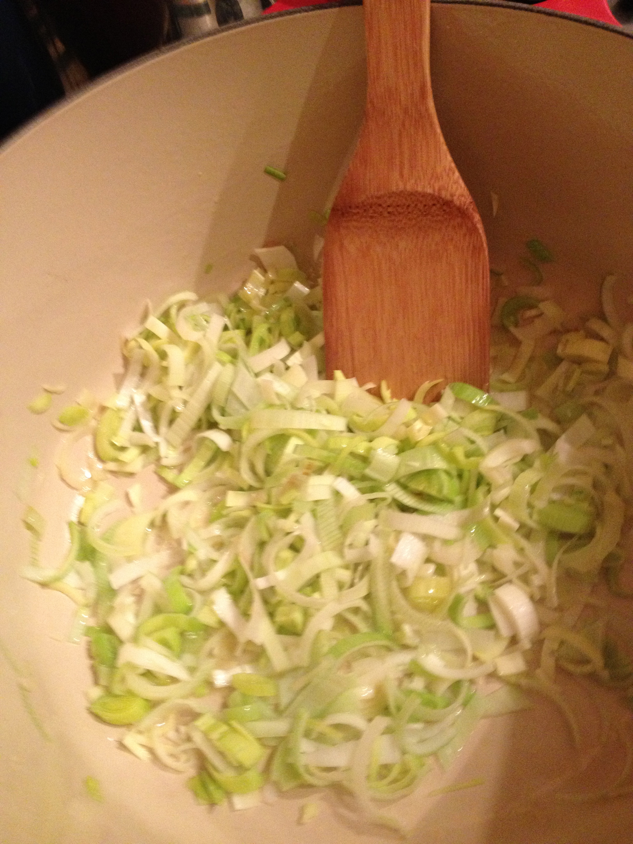 I got a text fro the dispatch company saying they would be delivering between 3:30 and 4:30. Perfect. I started to sauté the leeks in butter, being careful not to brown either the butter or the leeks.