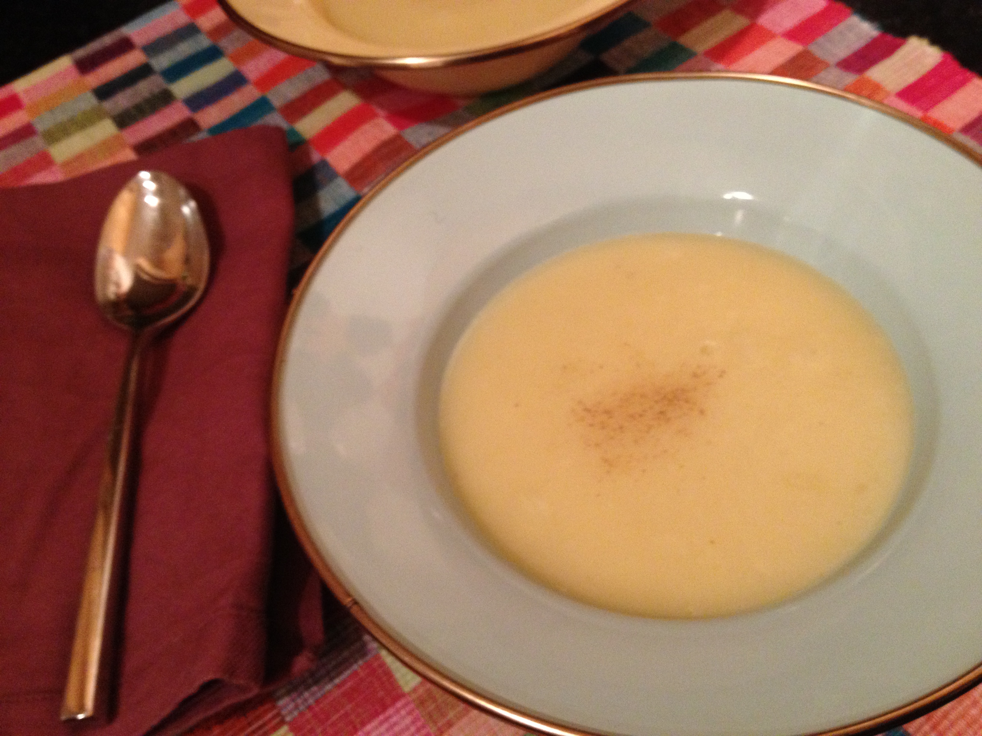 Anyways, back to my soup. We were having dinner at Mon Ami Gabi, a french steak house in the Paris Hotel, and we ordered a hot vichyssoise soup as a starter. It was delicious and anything but ordinary old potatoes and leeks. They served it table side, pouring the thin soup into a bowl that had a ripe and creamy slice of brie cheese in the base. As the cheese melted into the soup, a richness developed that elevated the soup to an unheard of level.
