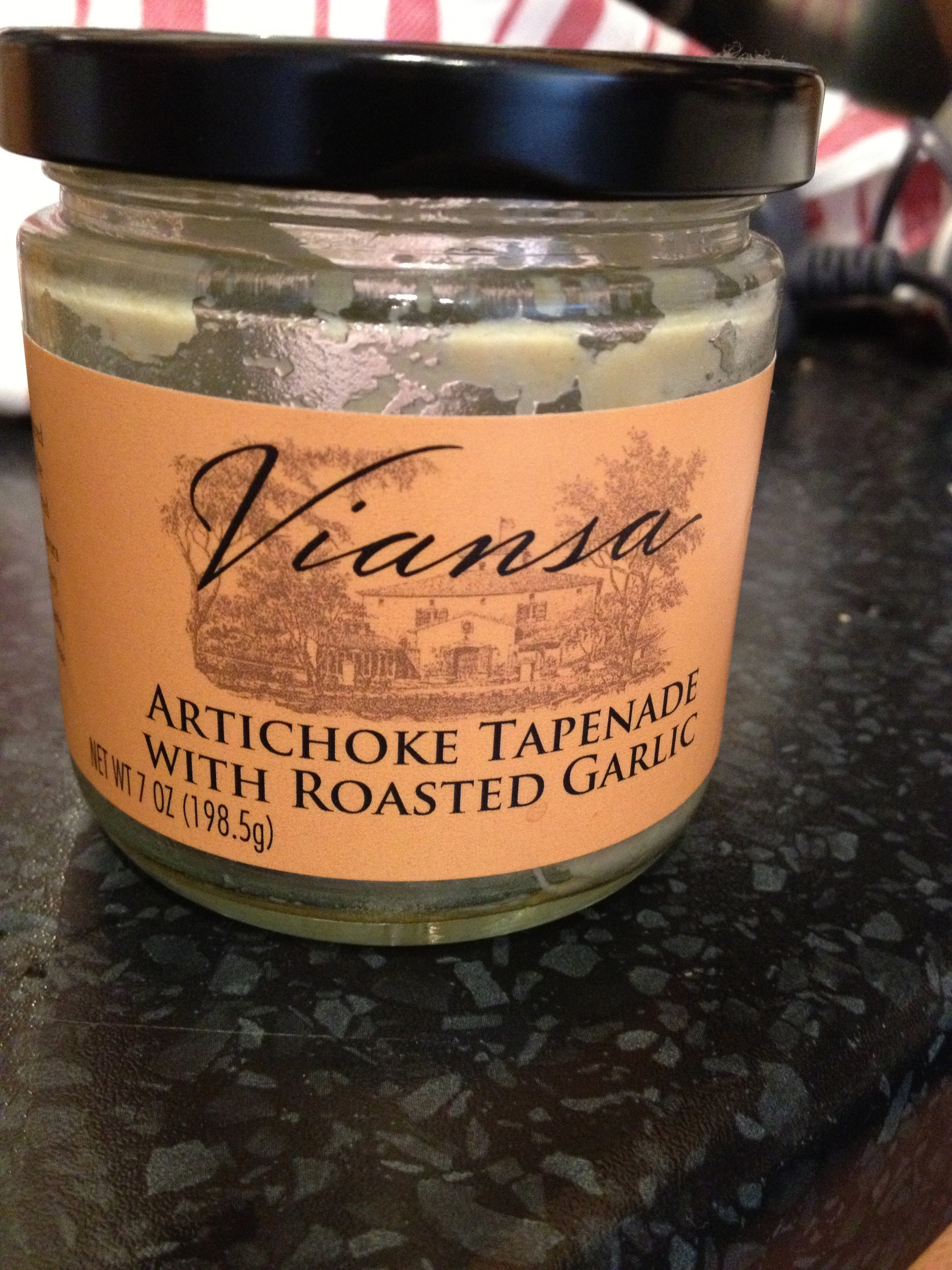 Nope. Not there. I placed a hopeless call to dispatch. It was after hours on a Friday so clearly no one answered. Now I was preparing a backup plan. I pulled out some salami, toasted some french bread, and put out a jar of Artichoke and Roasted Garlic Tampenade. I think it’s very important to have spreads and snacks on hand, just in case. Chris and I got this one when we stopped at Viansa Winery on our drive into Sonoma for the tail end of our honeymoon.