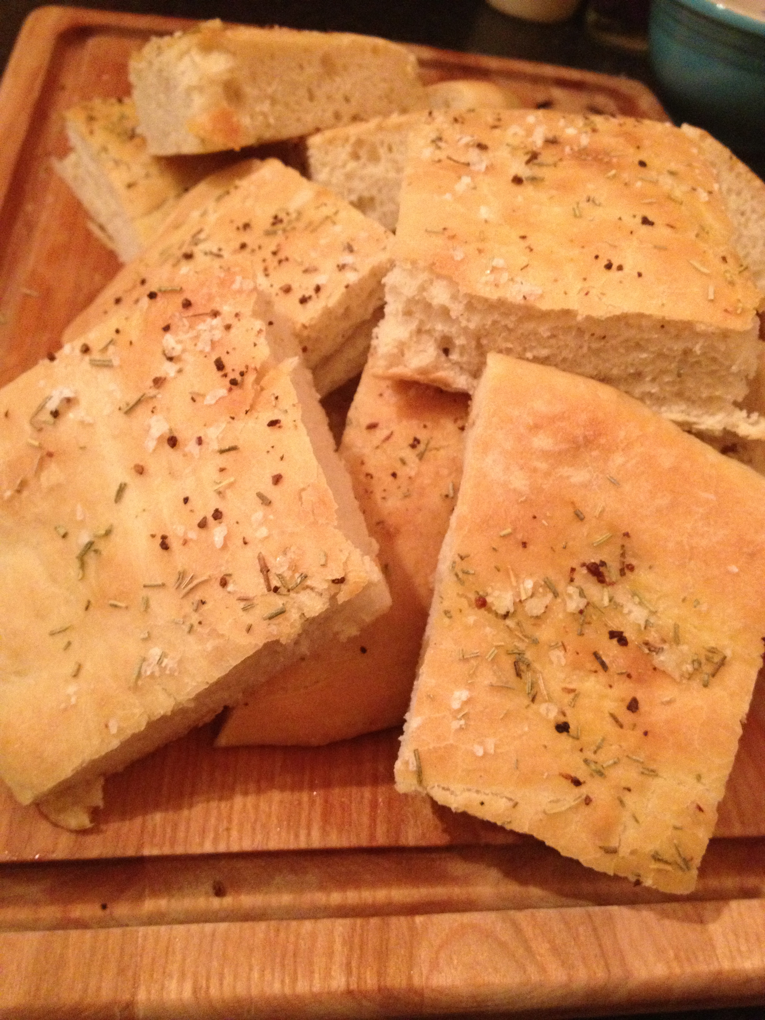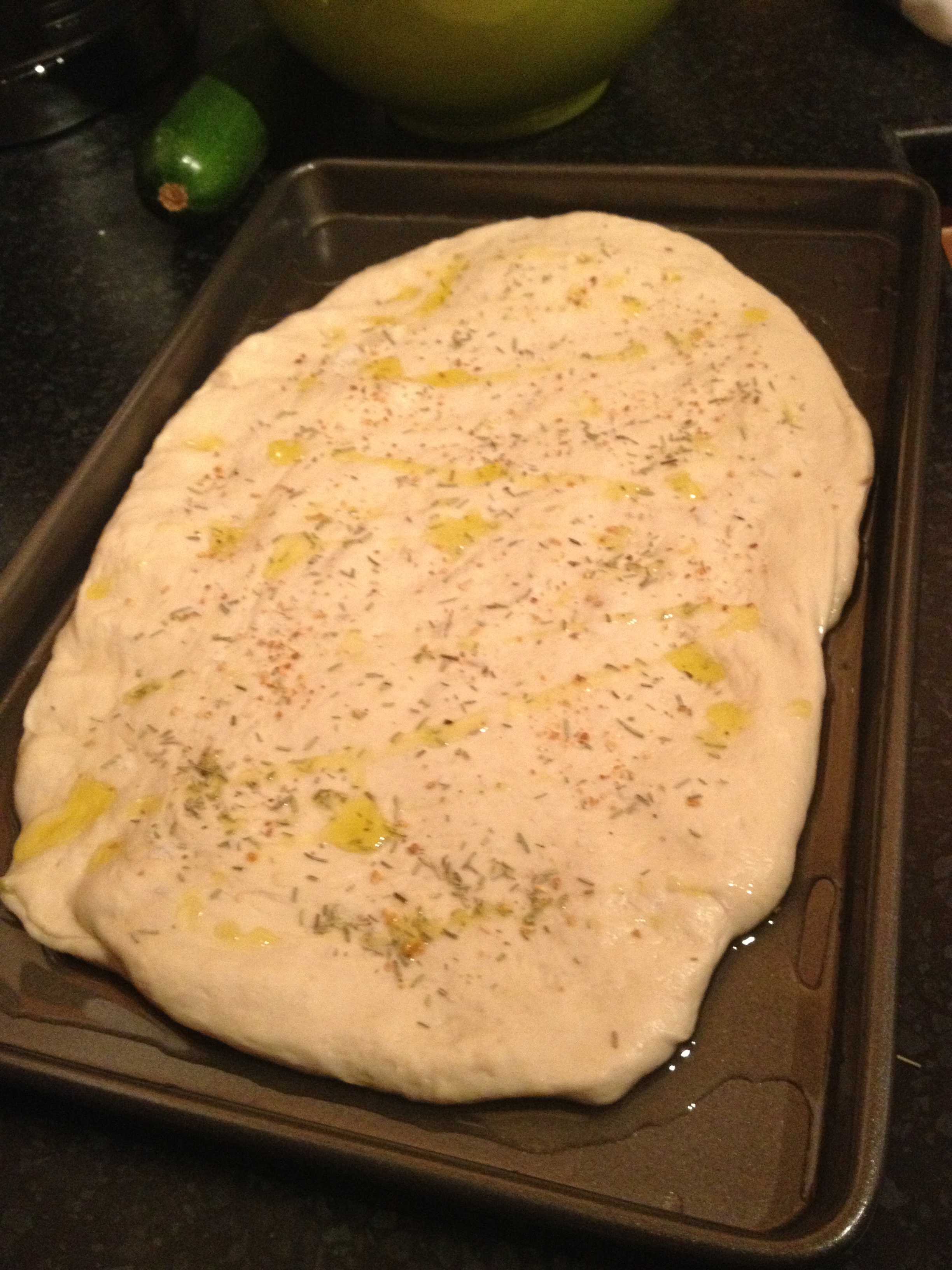 Spreading the dough out onto an olive oil covered baking sheet and drizzling more on top really gives the focaccia the attack from both sides it needs to create a crusty bread with a crunch outside, chewy inside and luxurious flavor all the way through.