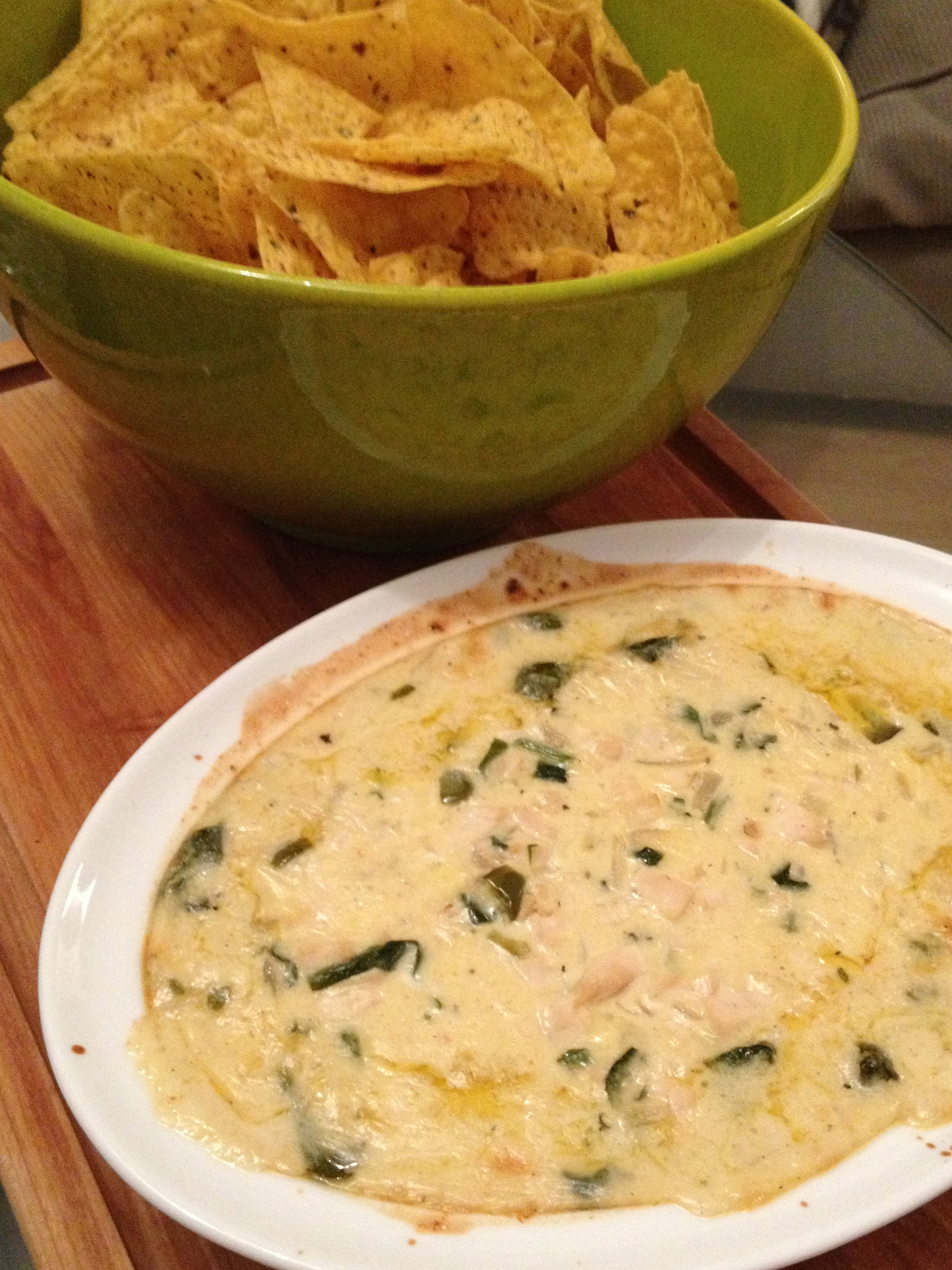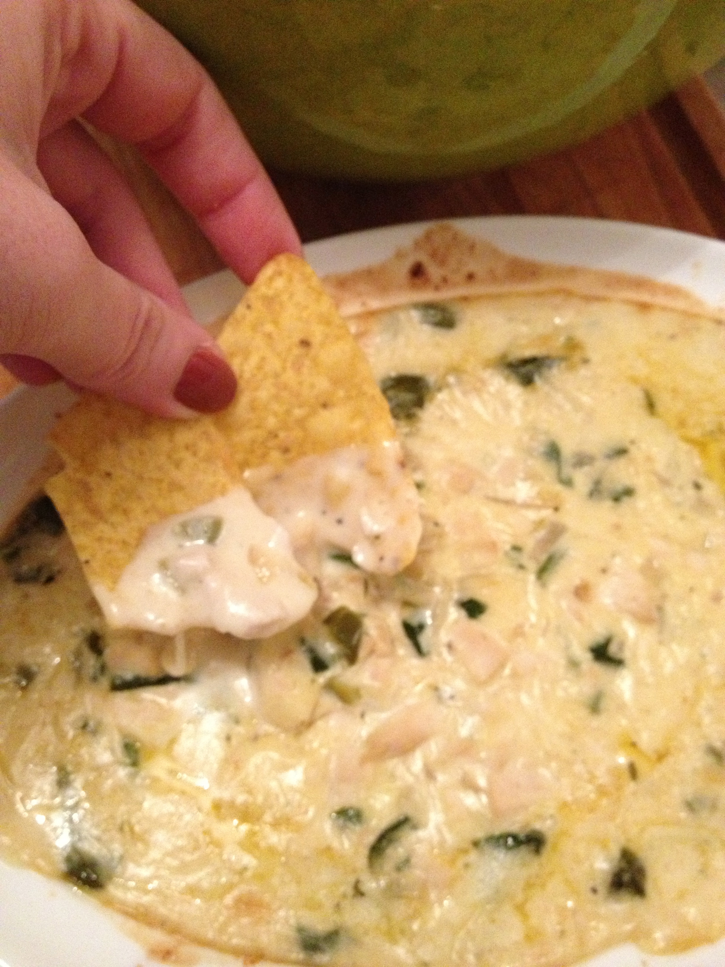 One of the crucial things about easy entertaining is to cook what you know. Don’t try something new without a test run. A few weeks back I had an overwhelming urge for Mexican food and, as we all know, that’s a hard craving to satisfy here in London. So I decided to try out an idea I had for Enchilada Suiza Dip. About 5 minutes and one margarita into staring at a Mexican menu, I get overwhelmed. I can never decide what combination # I want! Hard taco, soft taco, tamale? 2 hard tacos and a burrito? Cheese quesadilla and a chili relleno? More often than not, when the waitress comes, I fall back on my usual order of the oh-so-creamy, cheesy, salty, and spicy Enchilada Suiza. When a restaurant stuffs their enchiladas with chicken and spinach, it’s pure perfection. So this dip is a nod to one of my go-to orders at a Mexican restaurant.