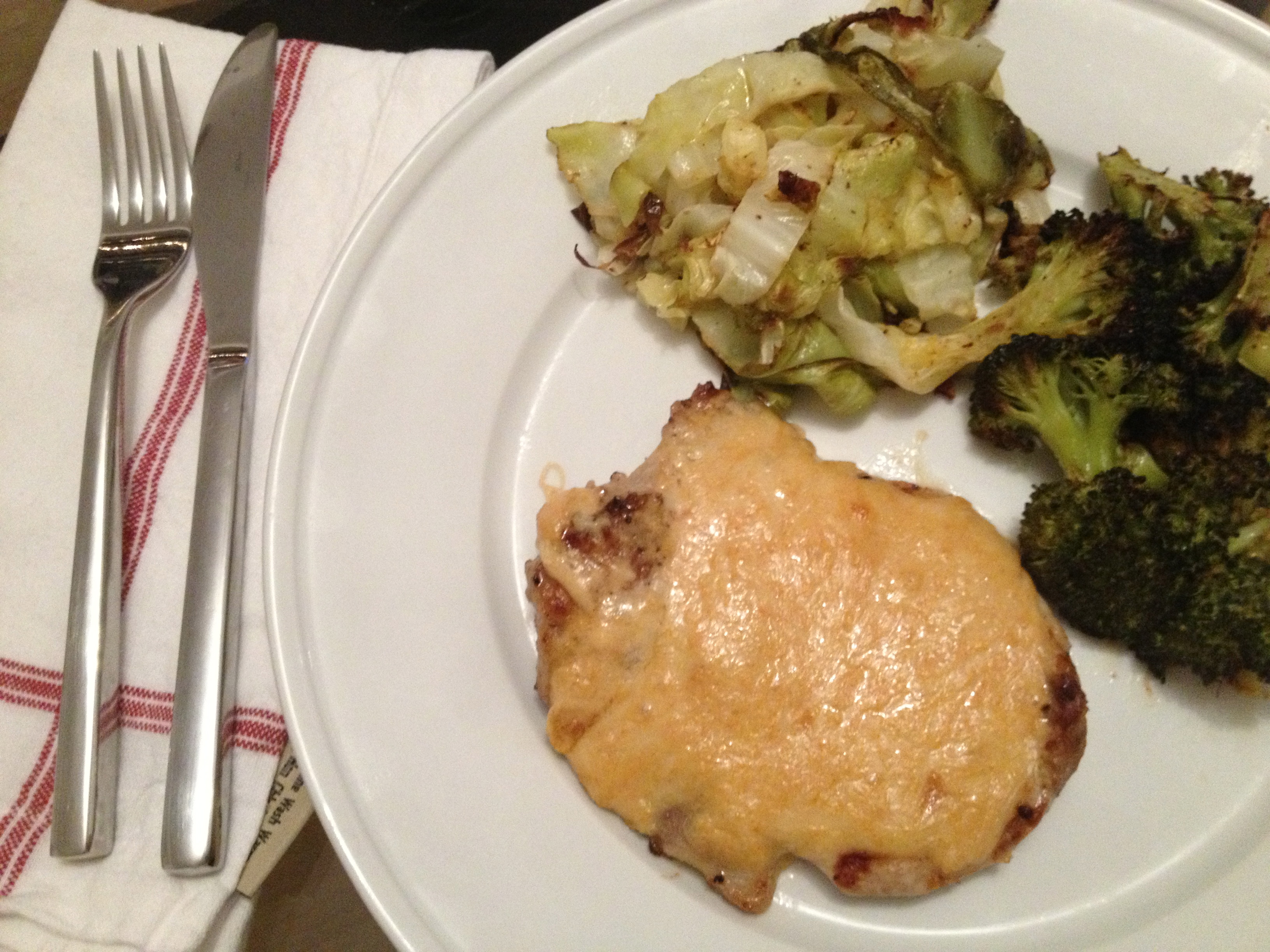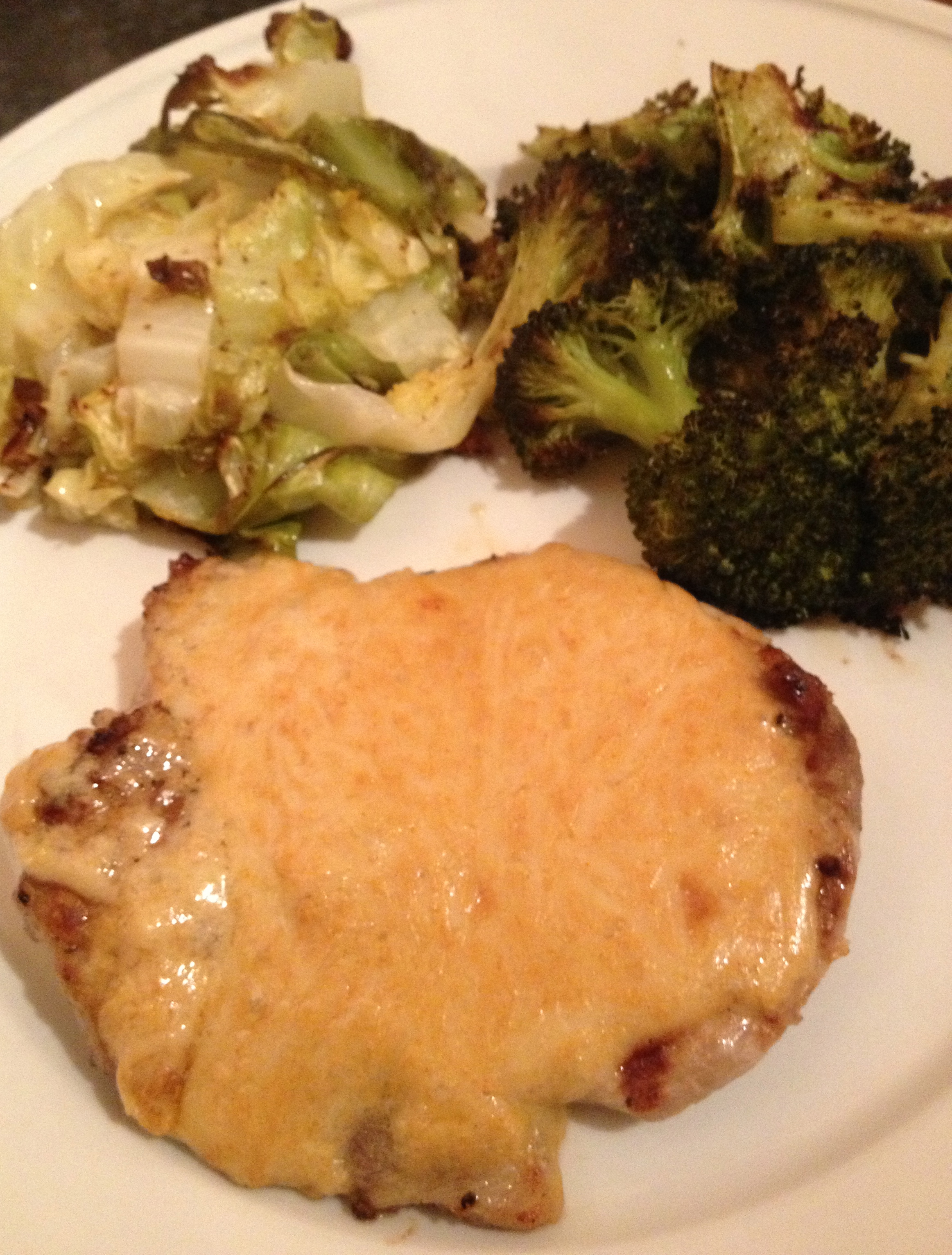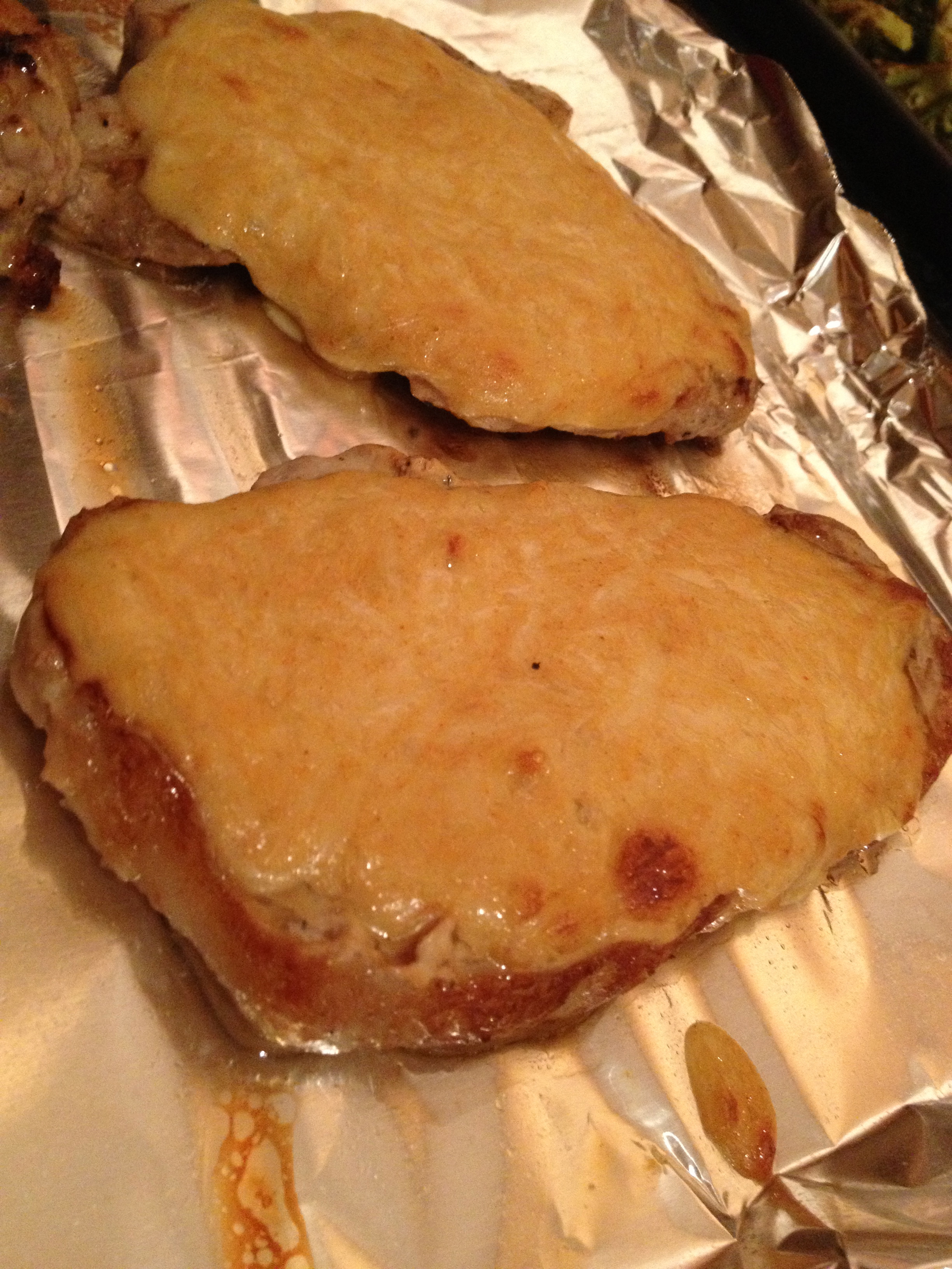 Then spread the cheese evenly over the pork and broil for just a minute or two…