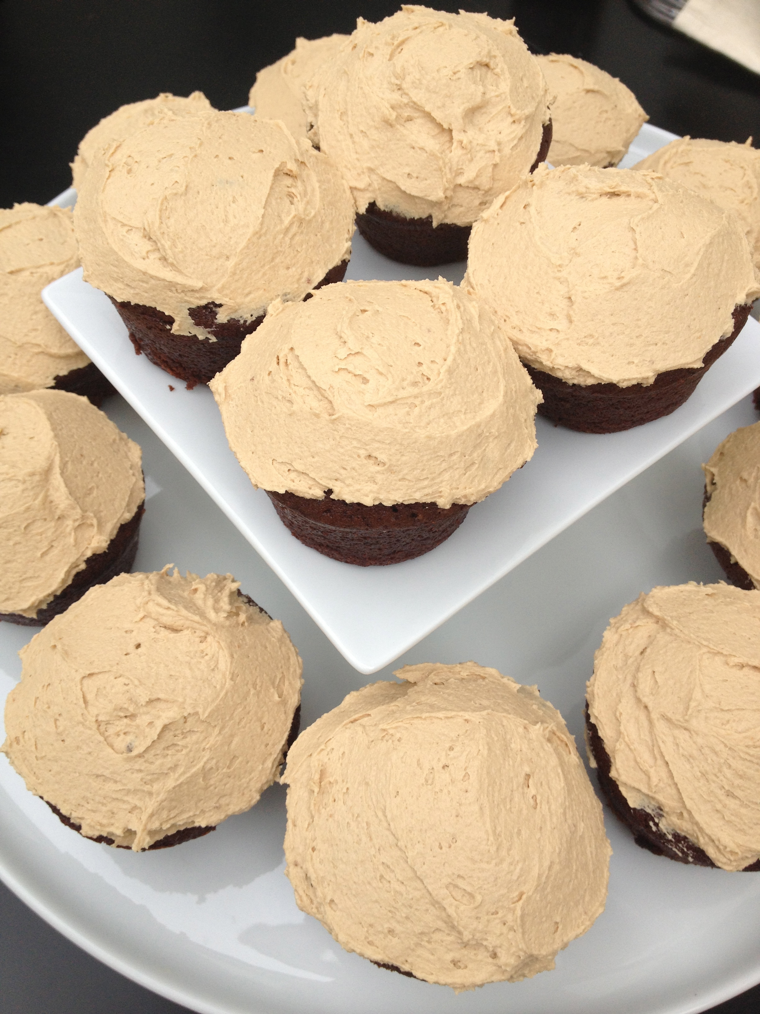 I loved that the cupcakes are not too sweet and the Guinness enhances the cocoa in the same sort of way a hint of coffee or espresso would. But what really made these a wow dessert was my icing – thanks to Trader Joe’s ingenious cookie butter. I made the icing the same way I would a peanut butter icing, just substituting cookie butter: 1 cup butter (room temp), 1 1/2 cups powdered sugar, 3/4 cup cookie butter. Enjoy!!!
