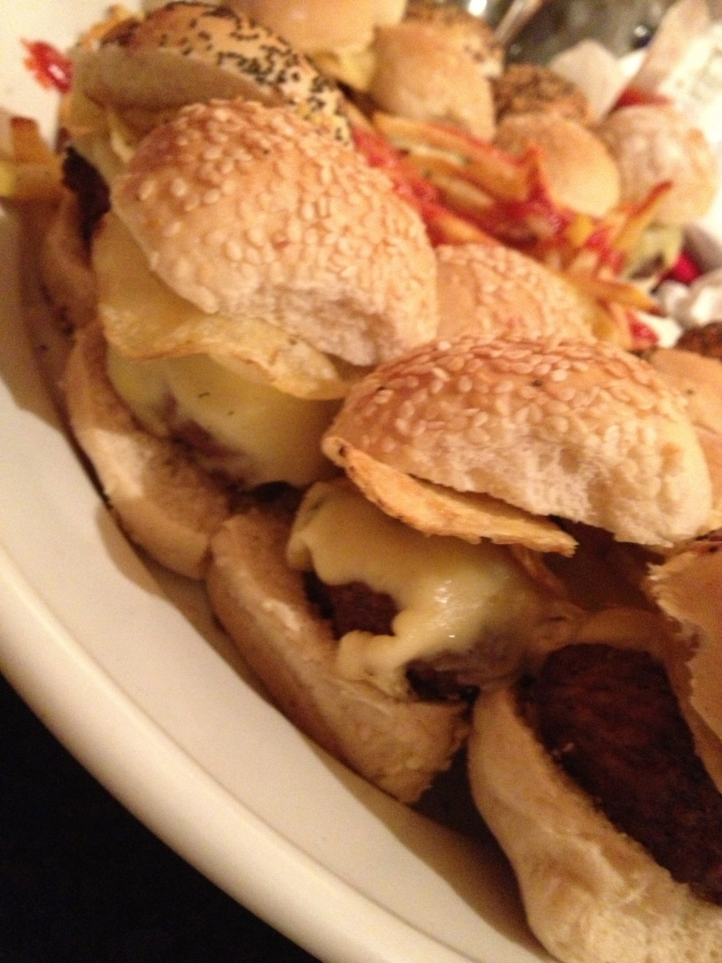 Seriously though, this is so easy. I would keep the burgers themselves very simple: just salt and pepper and your favorite cheese. But you will have some very happy friends asking, OMG did you put chips on these!?! Why, yes! Indeed I did.