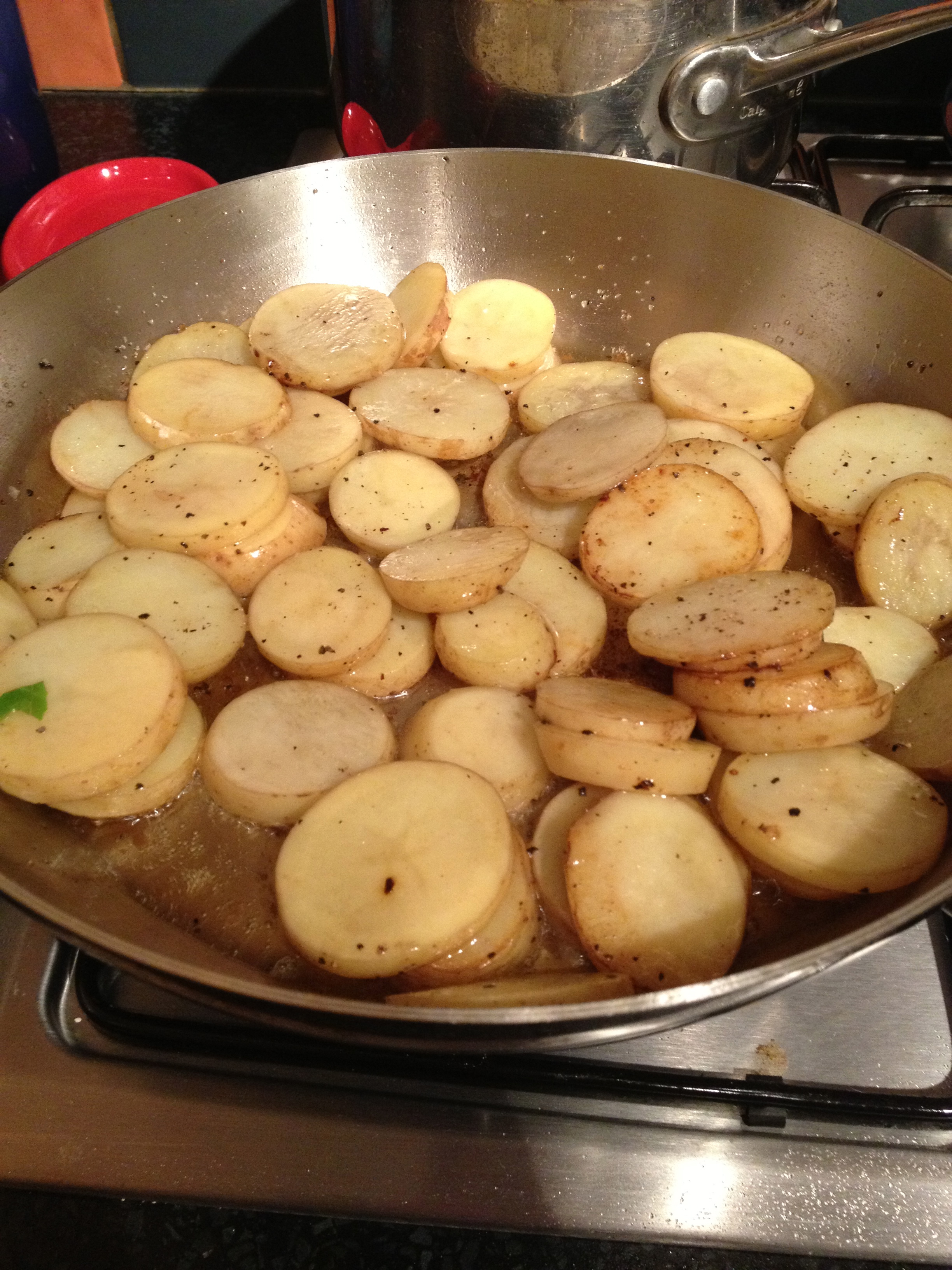 He cooked the duck perfectly, crisp on the outside and medium through. Then used the same pan to make these duck fat potatoes, garlicky and crisp.