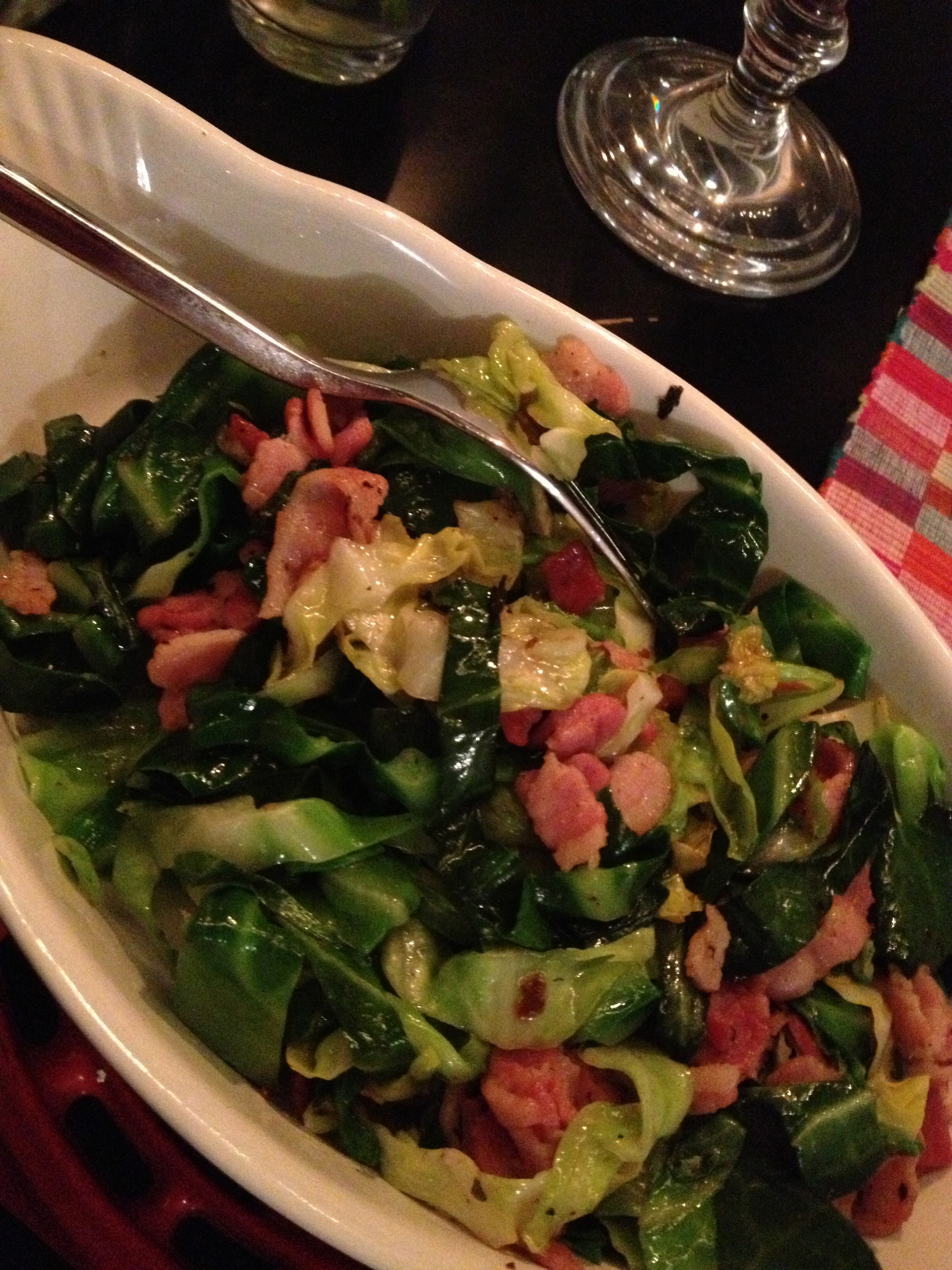 After braising cabbage with bacon, I gave Chris some tips on perfecting a balsamic pan sauce.