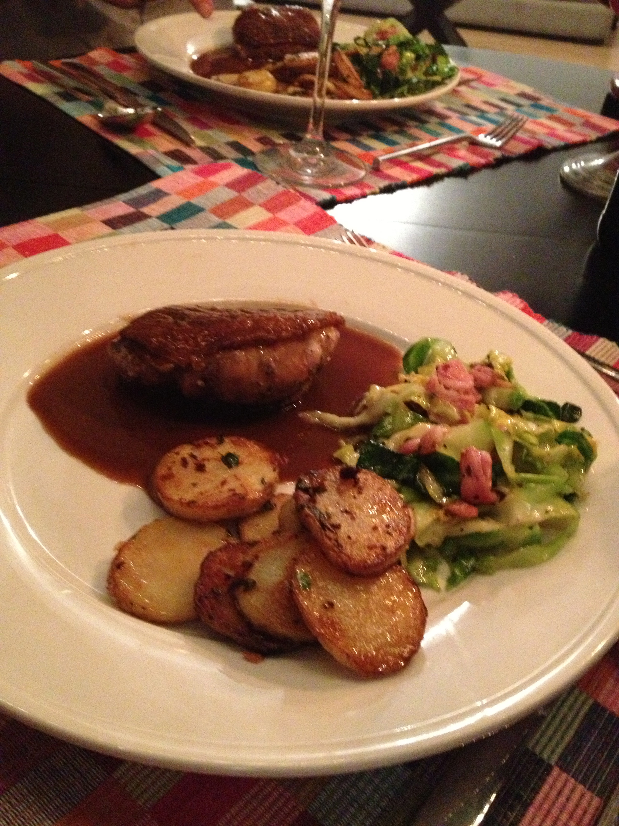 Chris followed this duck recipe from BBC’s Good Food, but I helped him create an amazing pan sauce for the dish. Don’t worry, he did every bit of hands on work! I didn’t lift a finger. Well except to raise my wine glass, of course.