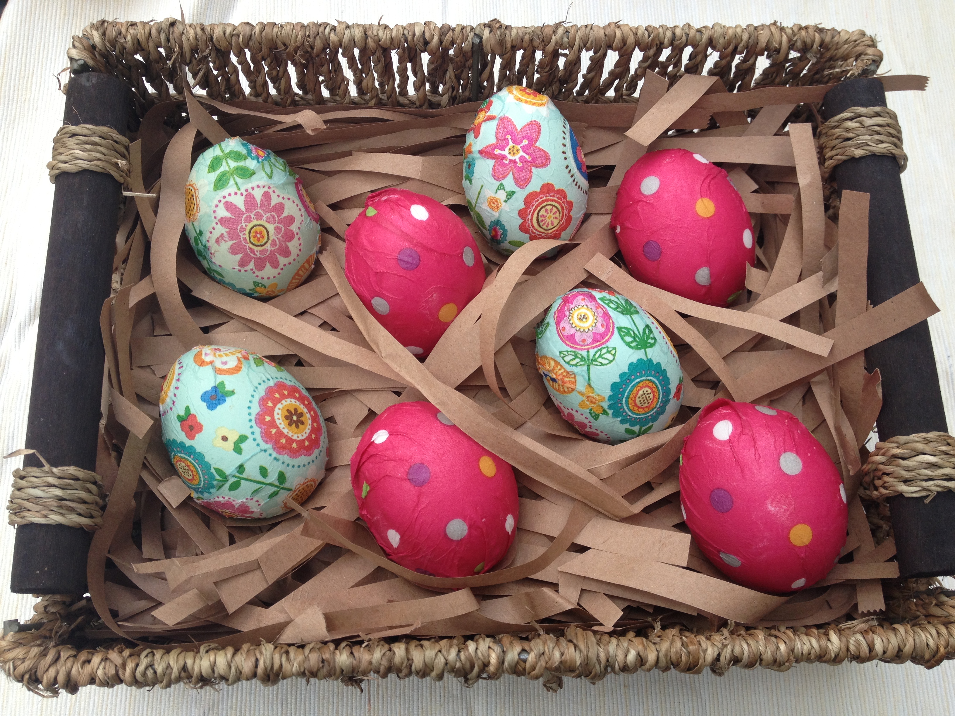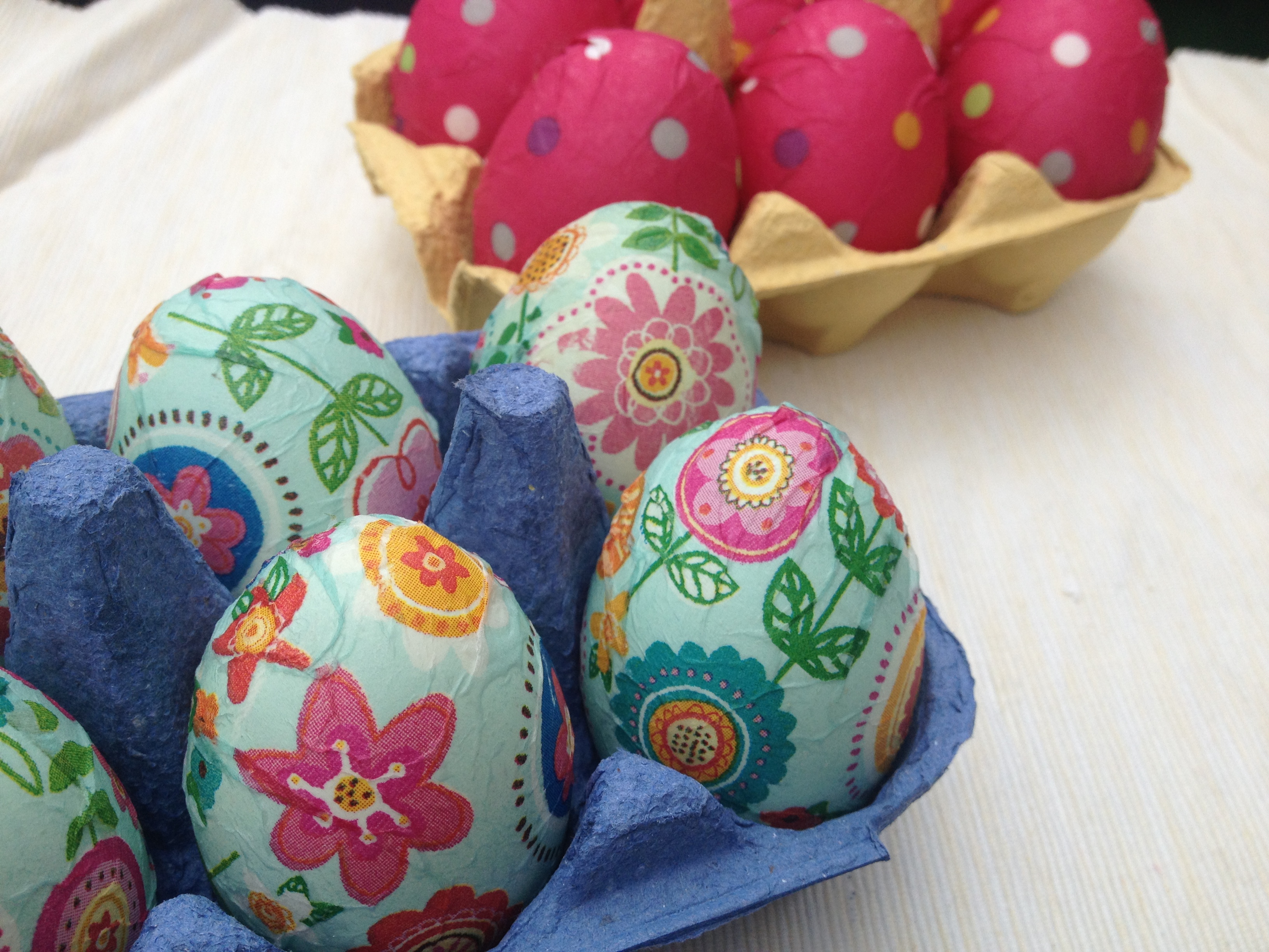 Why do all the craft projects on the internet look so easy when someone else is doing it? I found these Easter eggs on Pinterest (of course), using paper napkins to essentially decoupage the eggs. It looked so easy! And since they use egg whites as the adhesive they are still edible (unlike when you use some paints and glues).