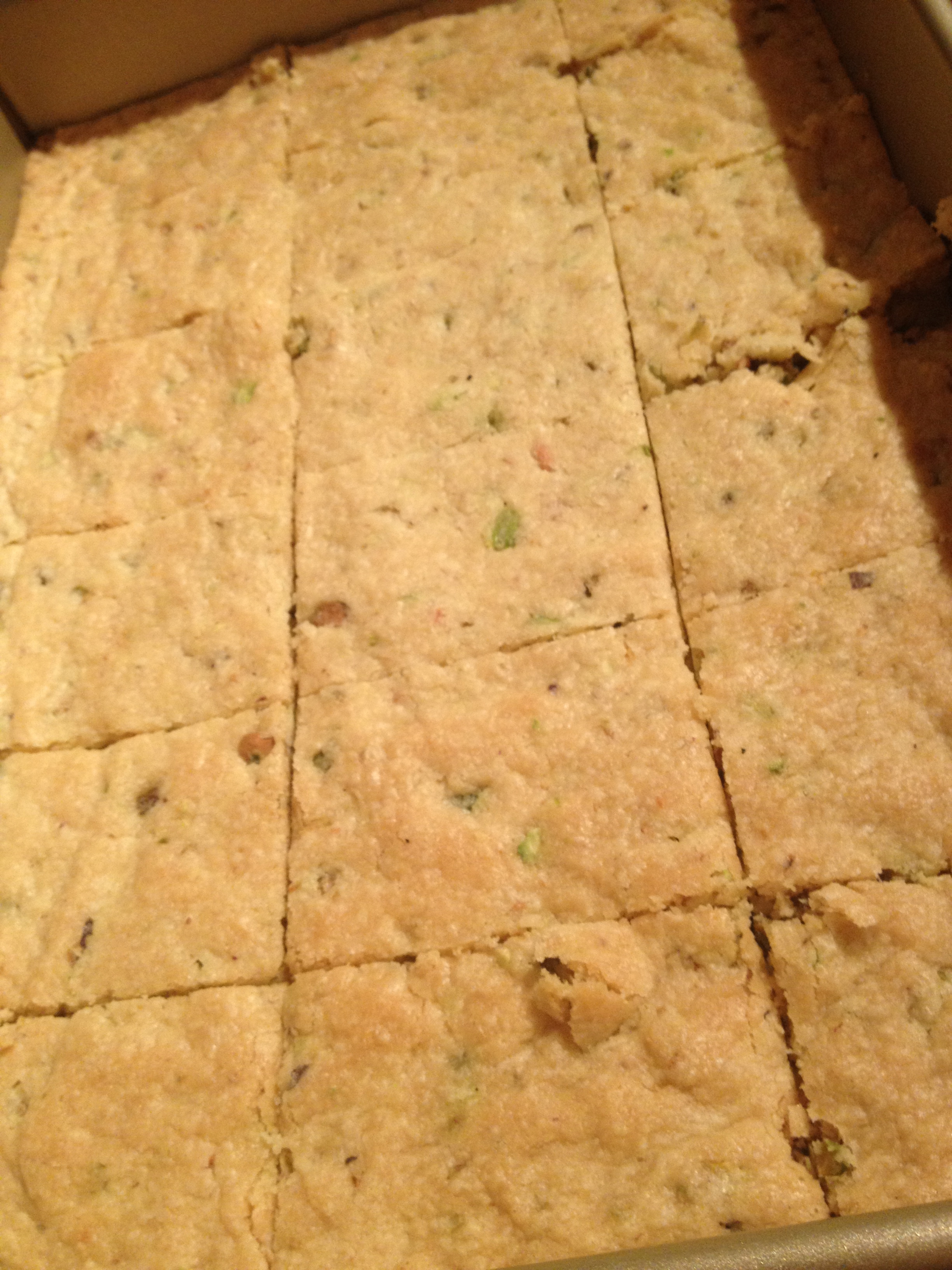 Bake at 325˚F for 25-30 minutes, until the shortbread just turns light golden.