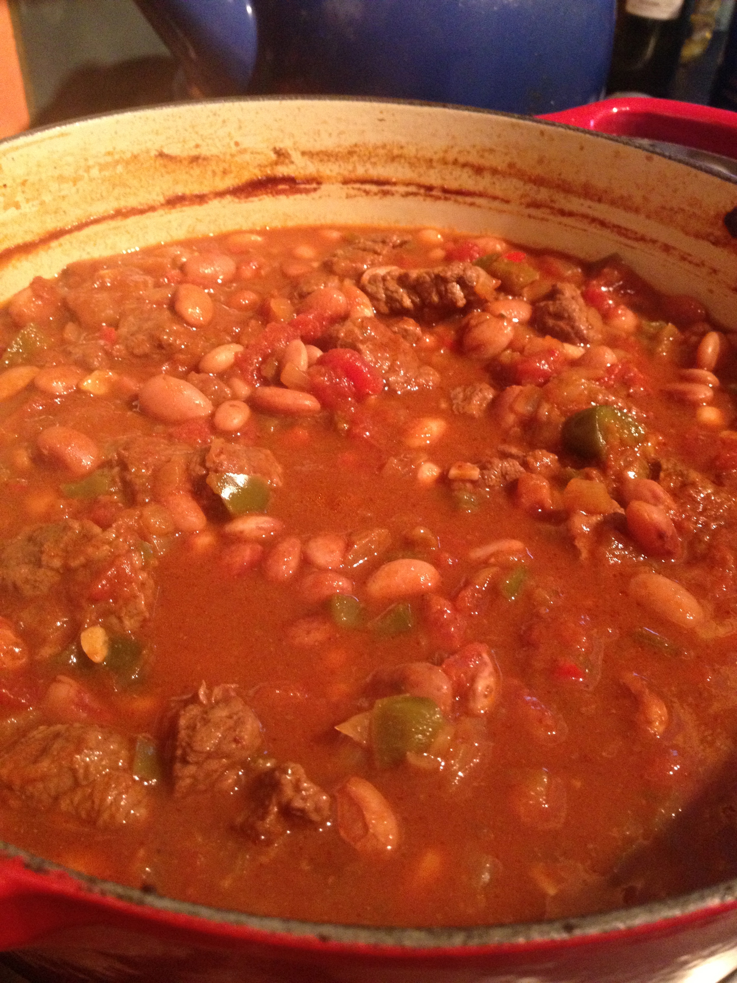 With all the wines, they kept bringing it back to this style being so great as food wines. Well isn’t this my lucky day!? As I was growing peckish chatting about amazing chorizo mussels and salty manchego, I happened to have a chili beef and bean stew braising in my oven! It’s a recipe that needs to cook for a few hours, so I had the forethought to start it before I headed out to the wine tasting. I was pleased with myself that I had avoided the trap of serving dinner at midnight, but I had no idea that I was on track to have a perfect dinner and wine pairing.