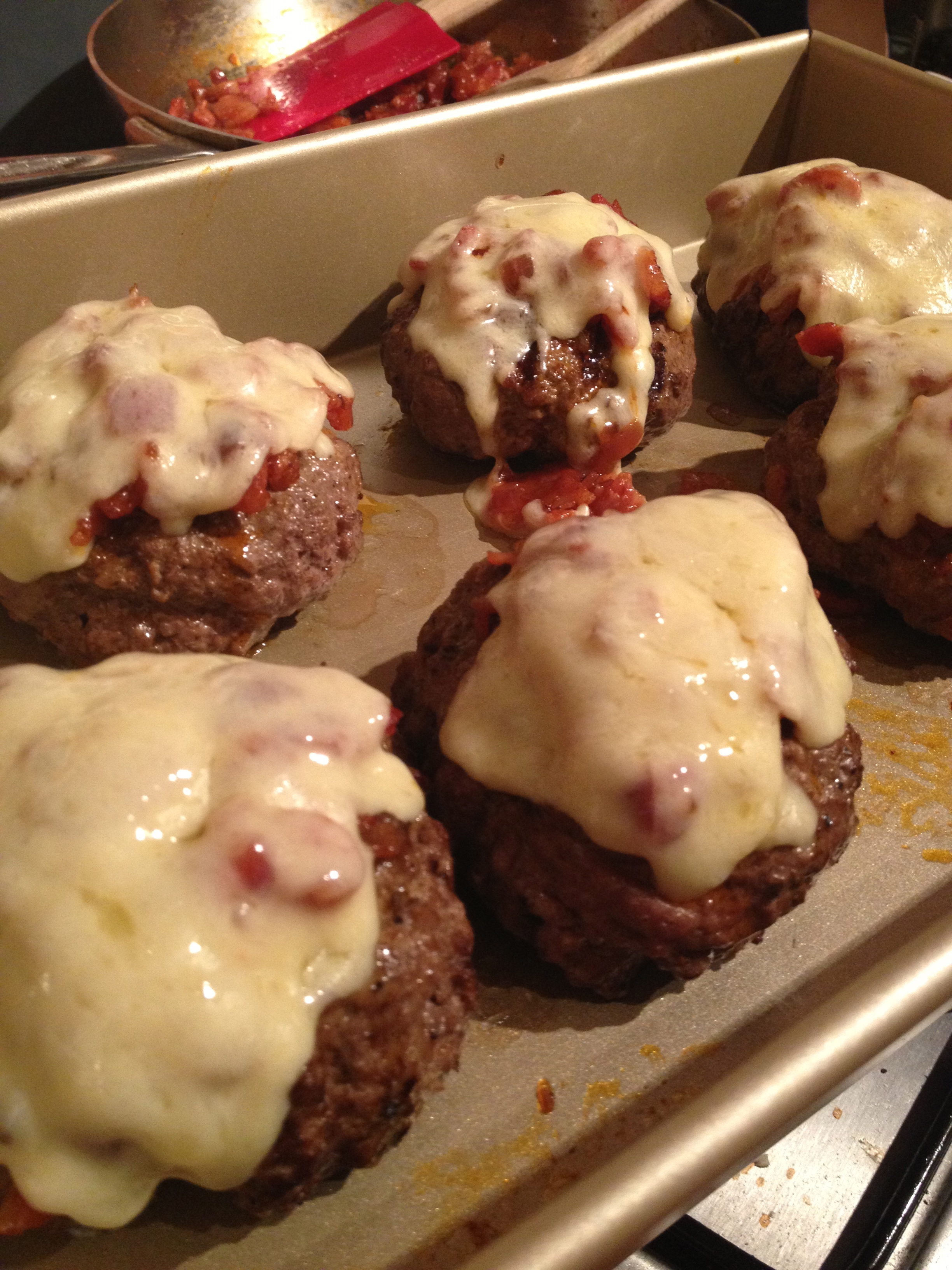 I have been thinking about burgers a lot lately. After all, they are my husband’s favorite food group. And it’s long been a favorite for cooking show competitions, taken on recently by Food Network Star and my beloved Master Chef. Plus I’m sure you are all getting ready for summer BBQs and Forth of July Parties (yes we will still find an excuse to celebrate America’s independence here in London, as sacrilege as that may be). The key to these cooking challenges, as with feeding friends and family, is being crowd friendly but not safe and boring. So I decided to make a play on a bacon cheeseburger by making an oniony bacon spread, a marmalade if you will, to top a classic beef burger.