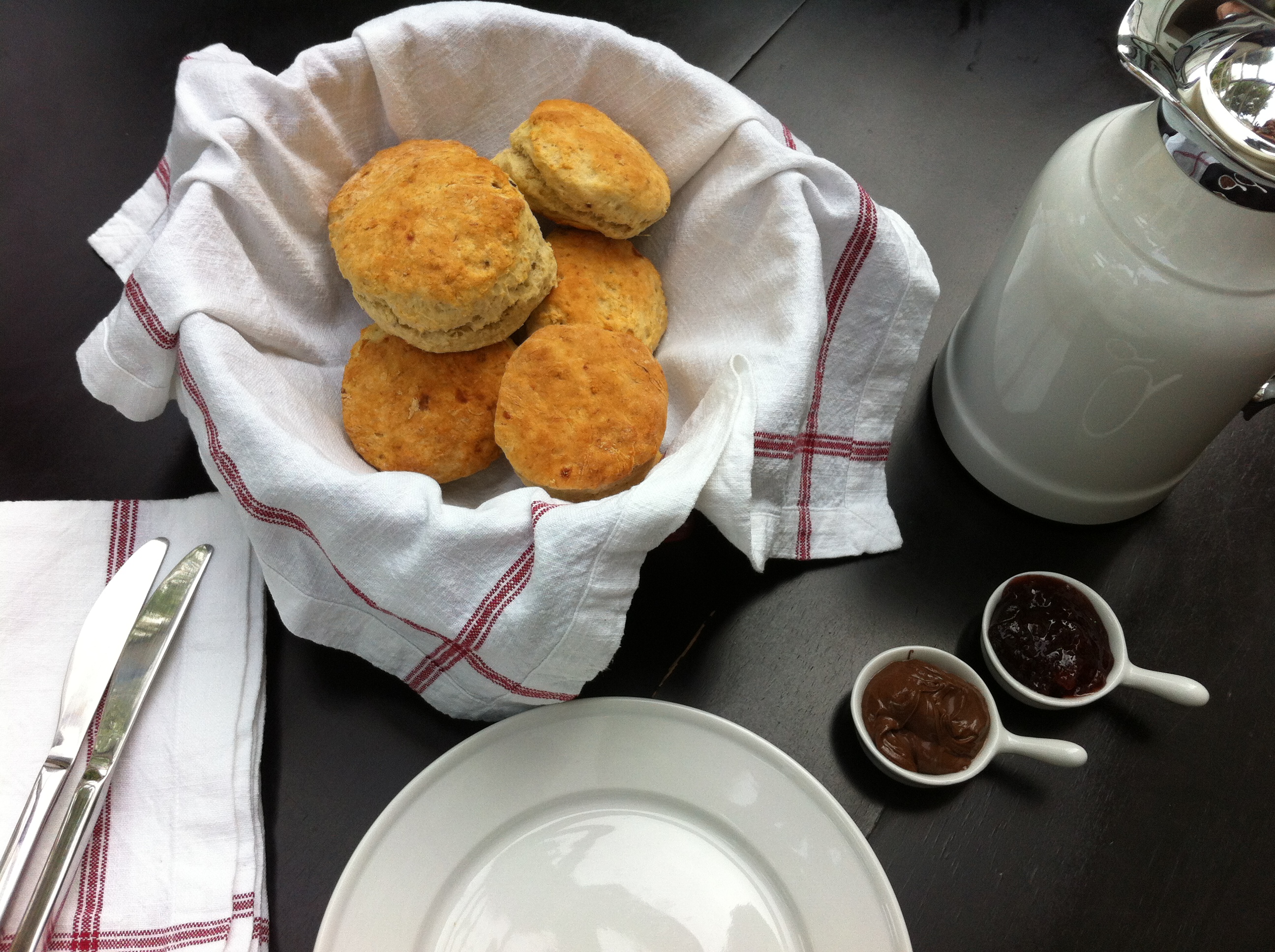 Since we are in Belgium this week, I figured why not start the chocolate train rolling a bit early with nutella spread all over these amazing breakfast treats. Of course, they are also great with strawberry jam.