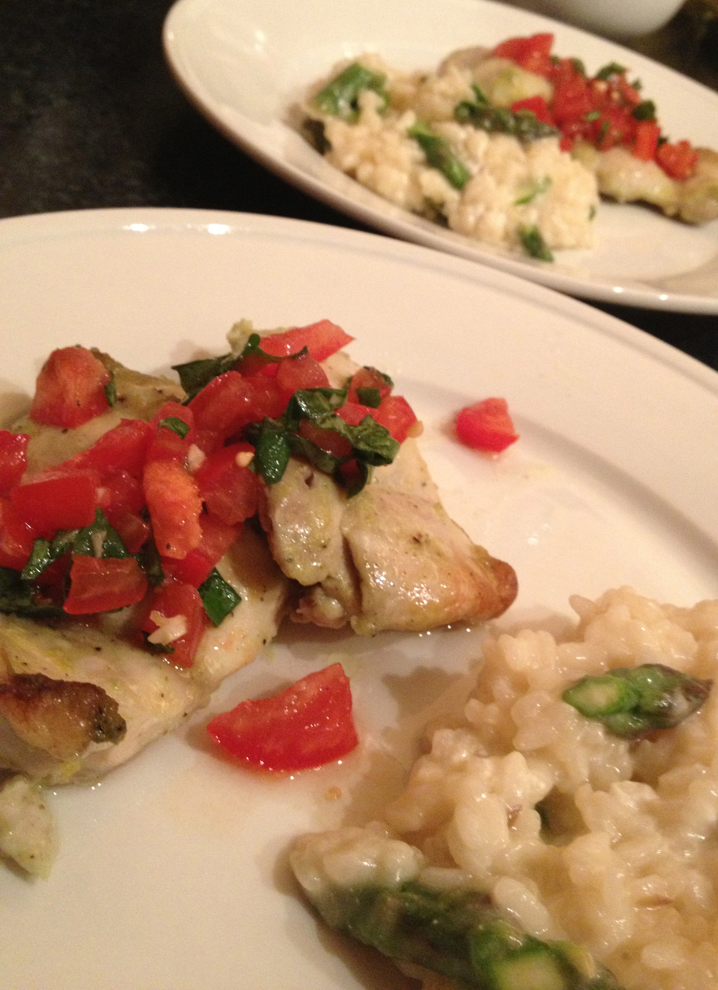 Serve the chicken topped with the bruschetta and your favorite side dish. I recommend a risotto or parmesan orzo.