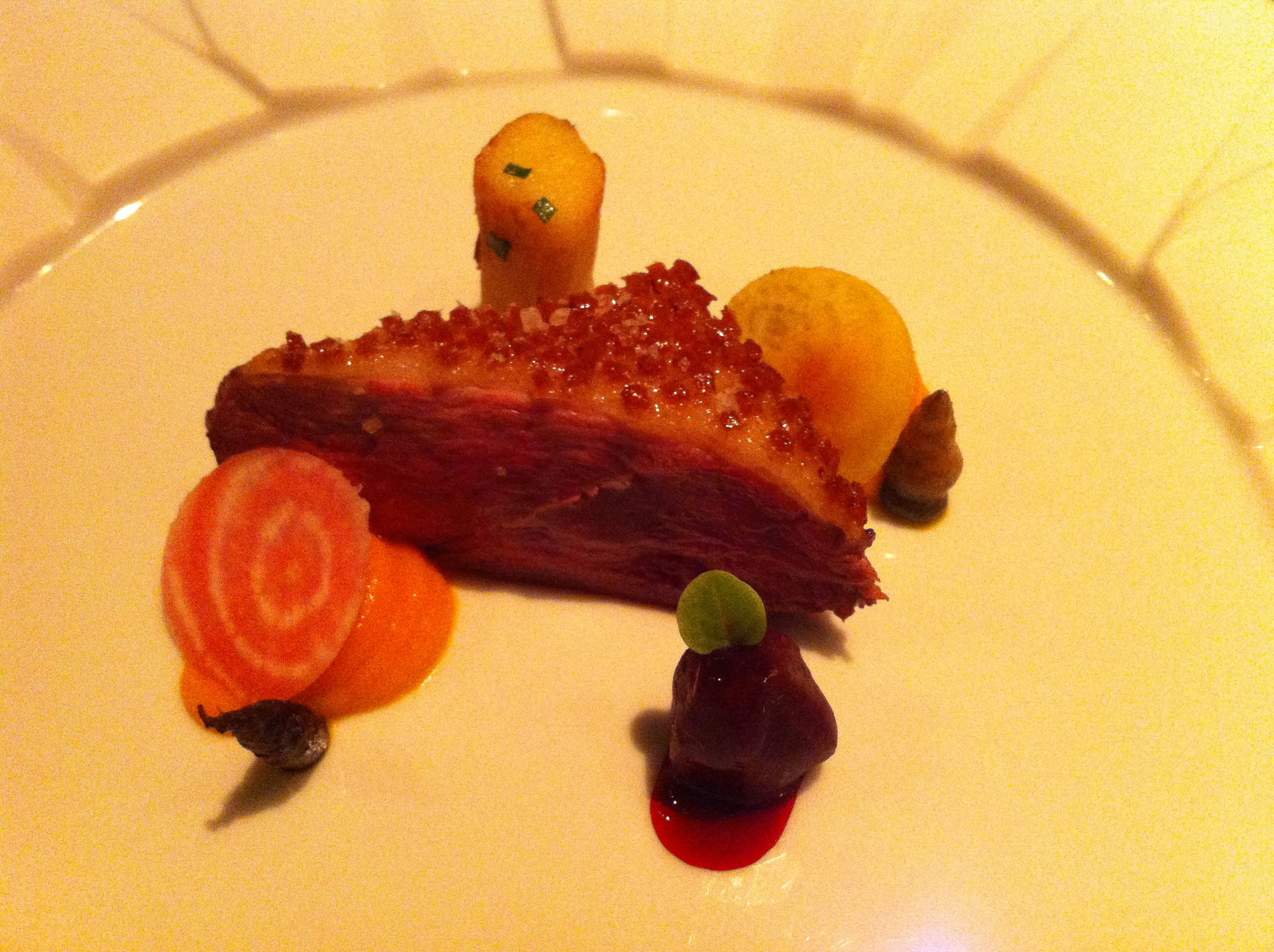 My dad and Chris after the meal. It was a lot of a lot in the best possible way. The standout course for me was the crispy skinned rare duck with root vegetables, paired with a glass of Colheita Red from Herdade do Peso. The Portuguese wines we had with the meal made me excited for a return trip to explore the wine regions.