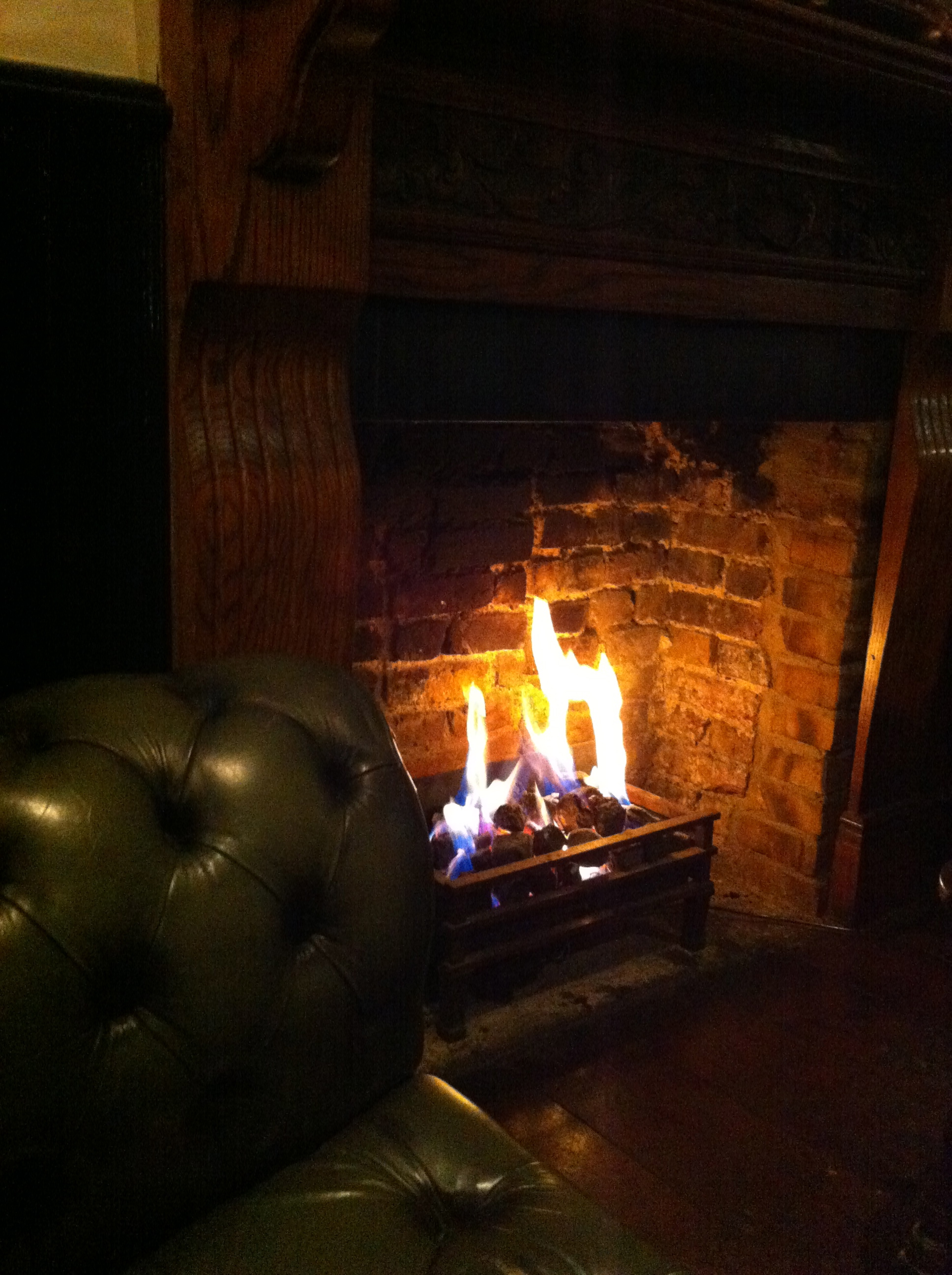I found my fireplace fix this weekend! Chris and I went over to our corner pub on Saturday night for some snacks and games (yes I realize that you are thinking I’m pretty much the coolest person ever; this being how I spend a Saturday night and all).