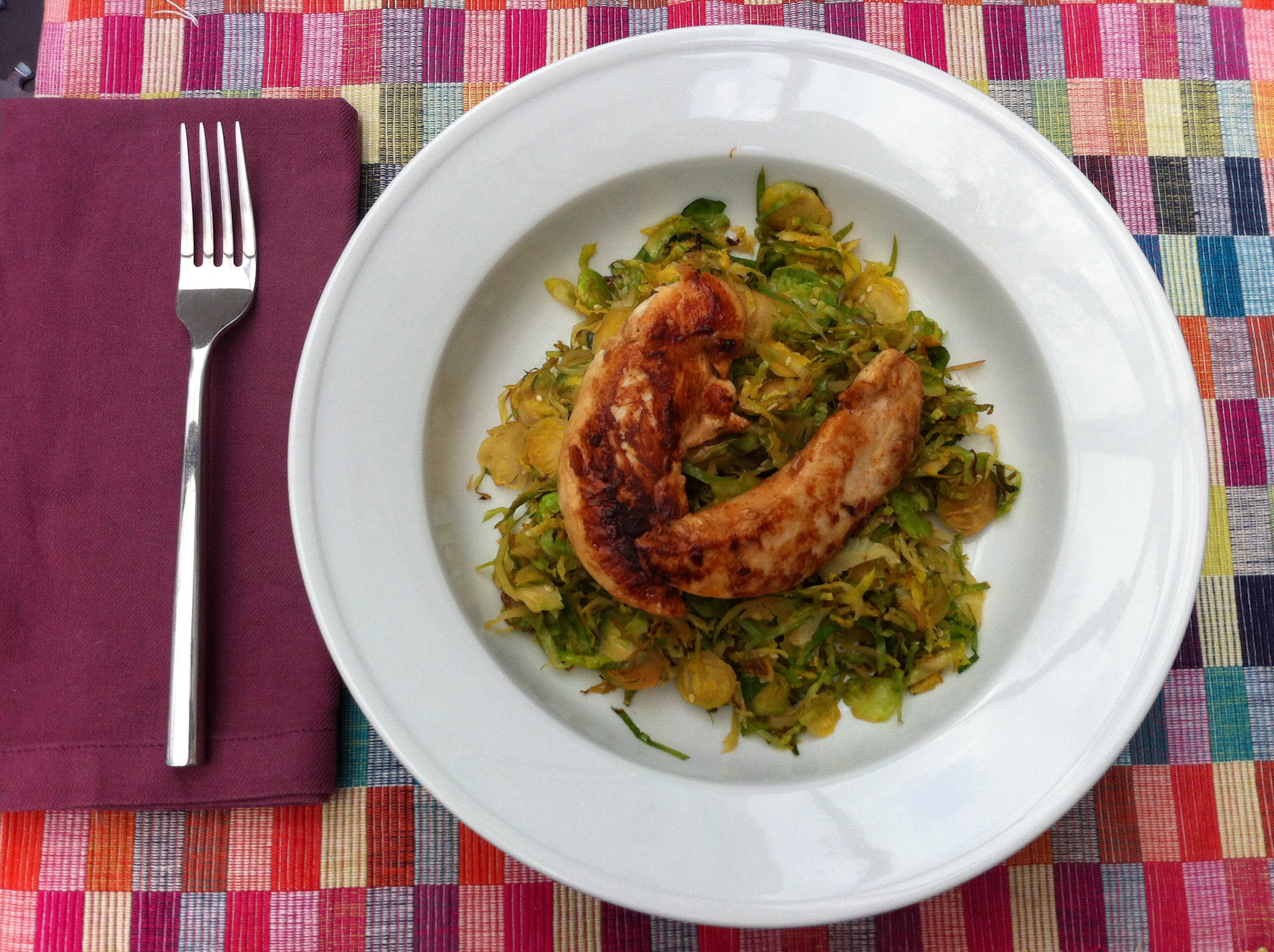 Sesame Brussels Sprout Hash with Ginger Soy Chicken